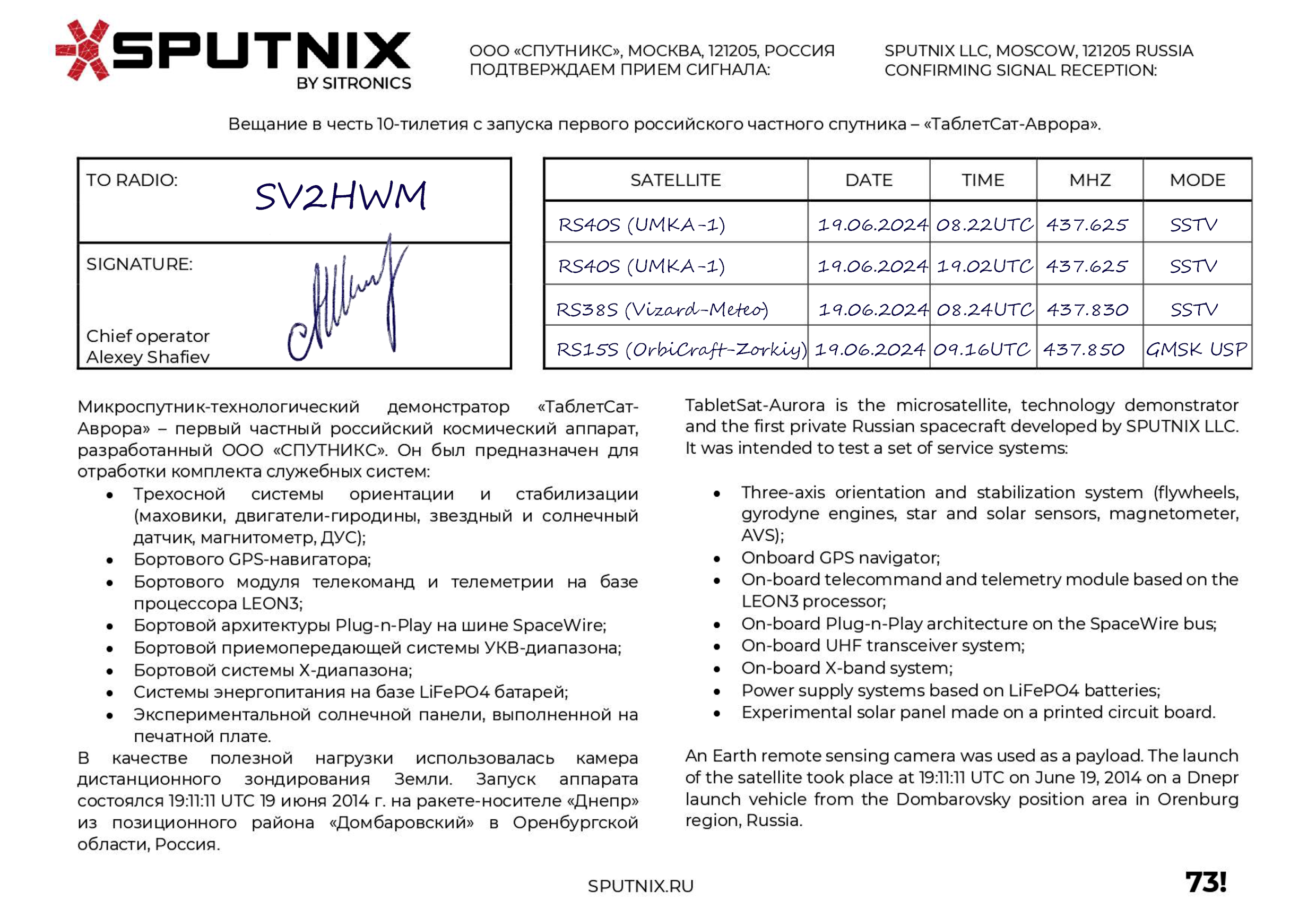 ORBICRAFT-ZORKIY RS15S