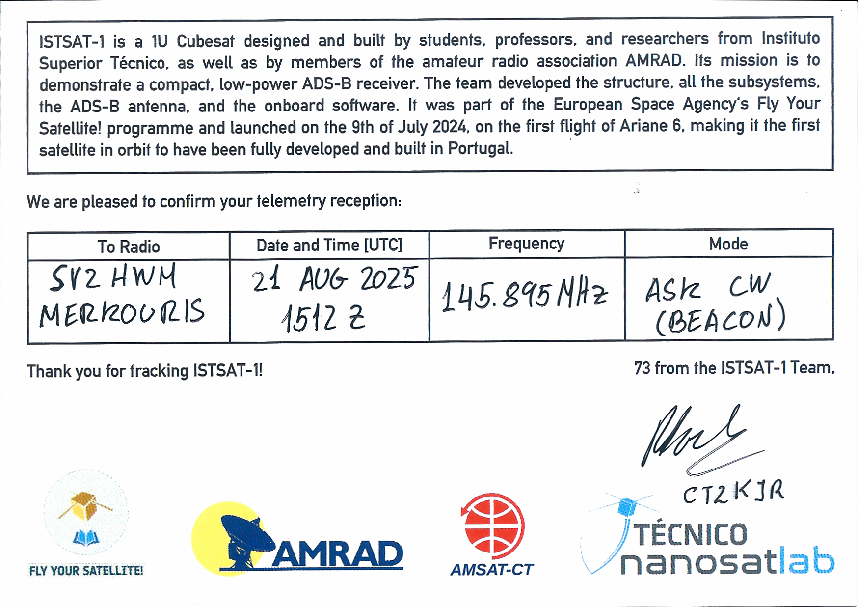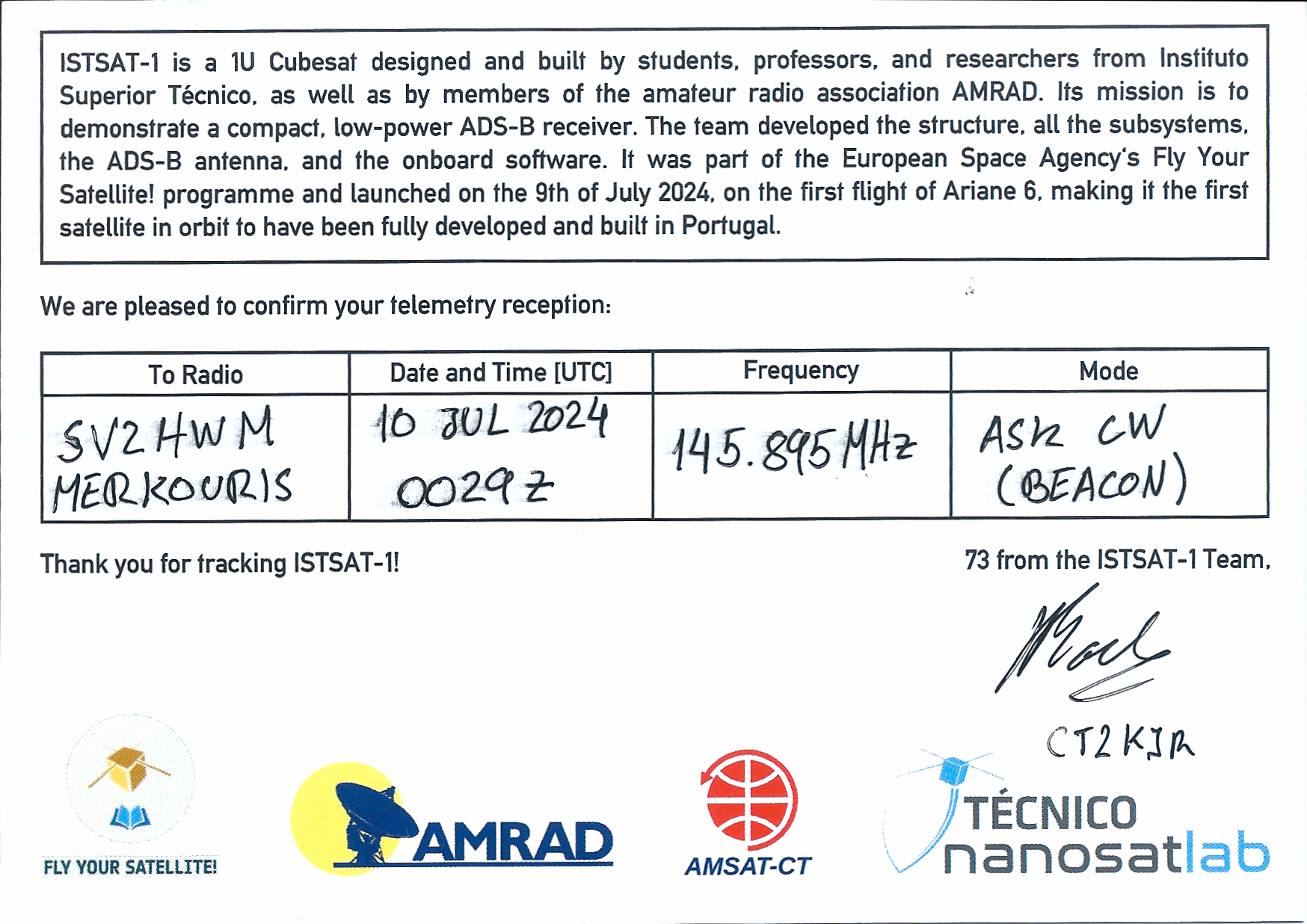 ISTSAT-1 CT6IST