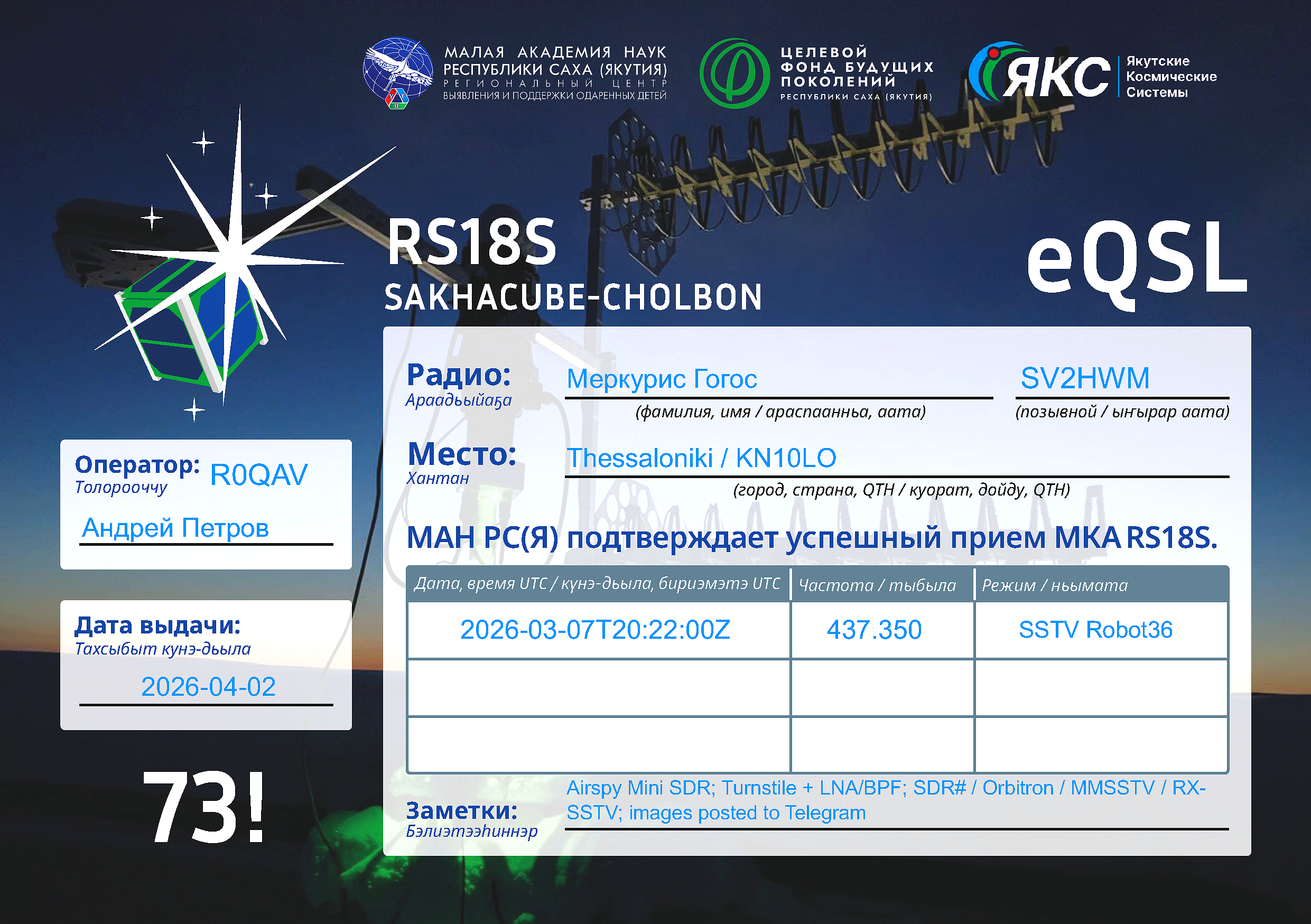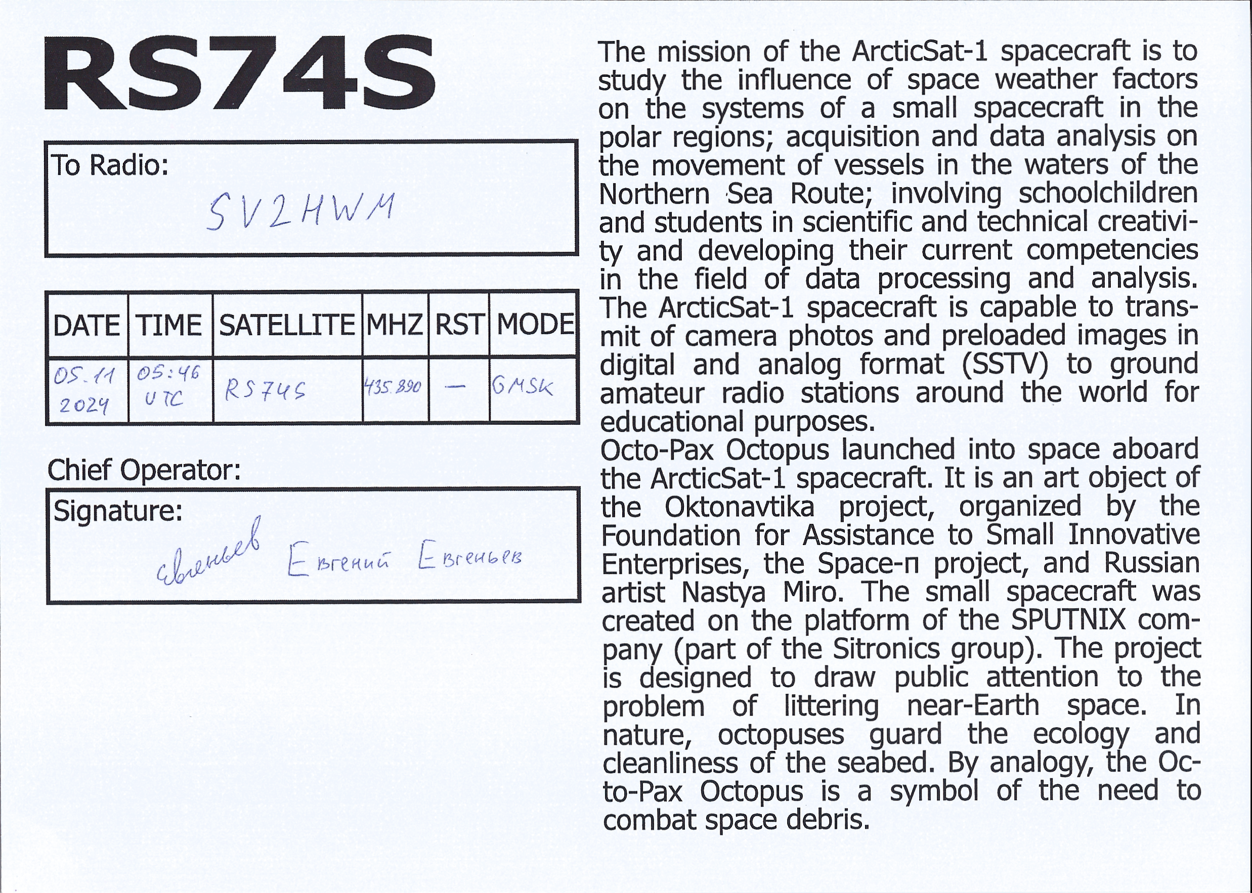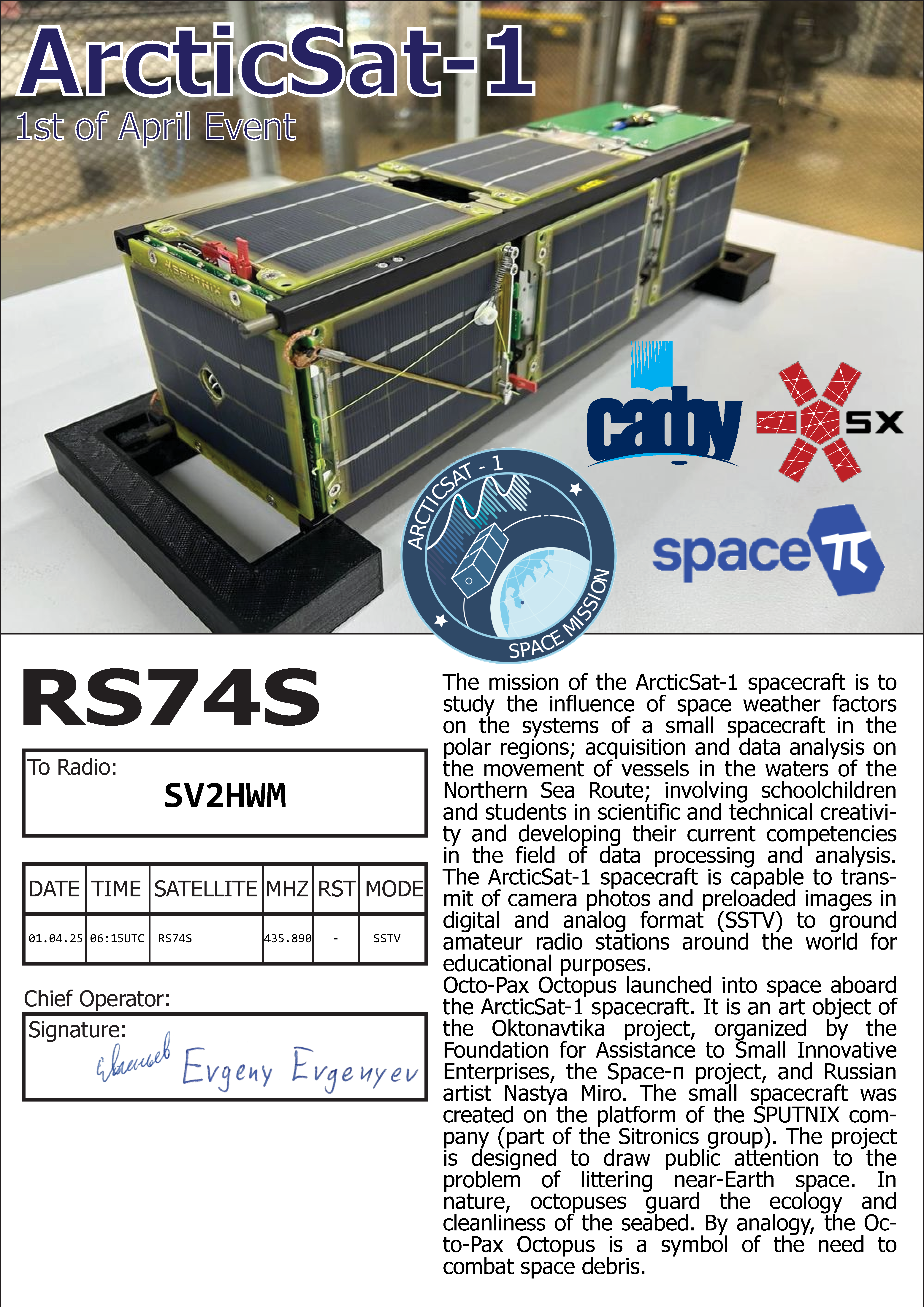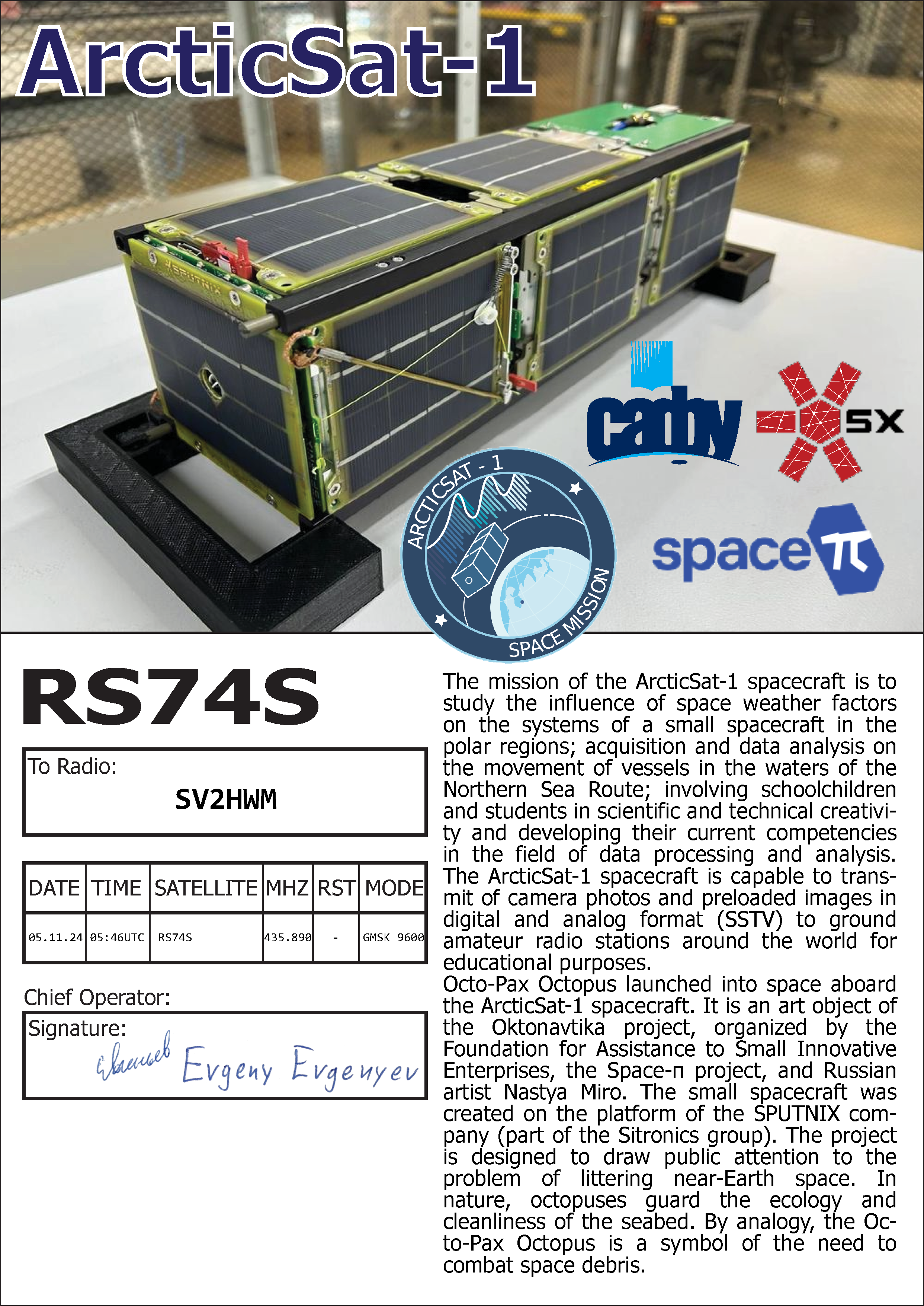 ARCTICSAT-1 RS74S