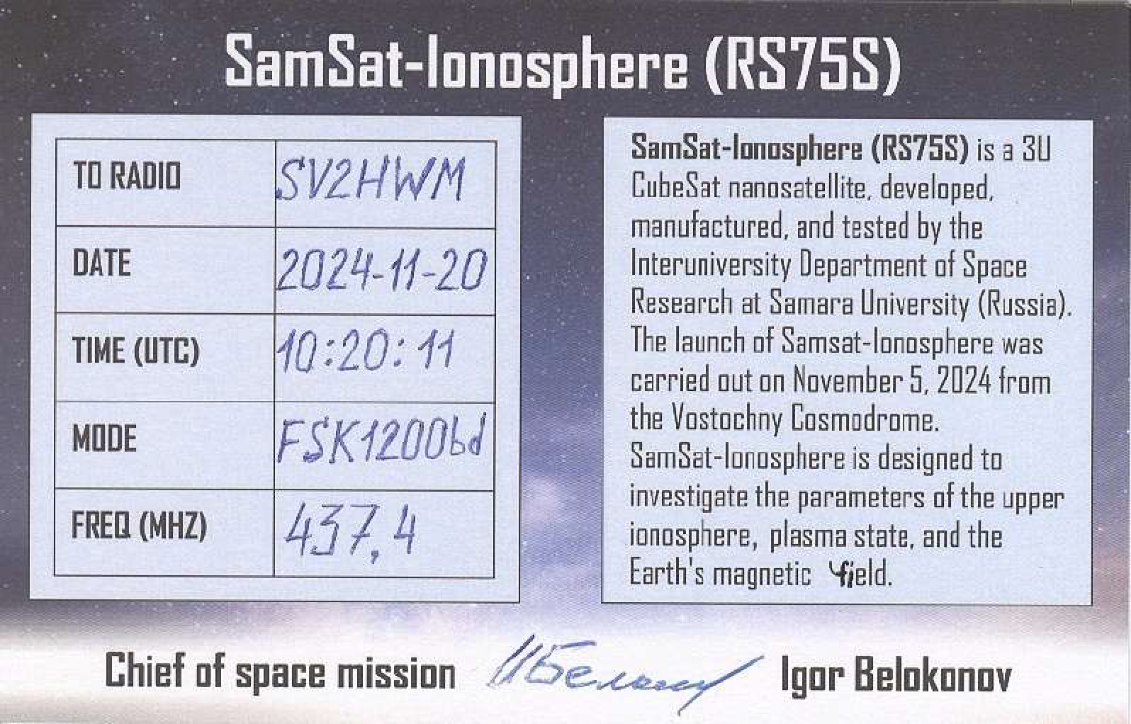SAMSAT-IONOSPHERE RS75S